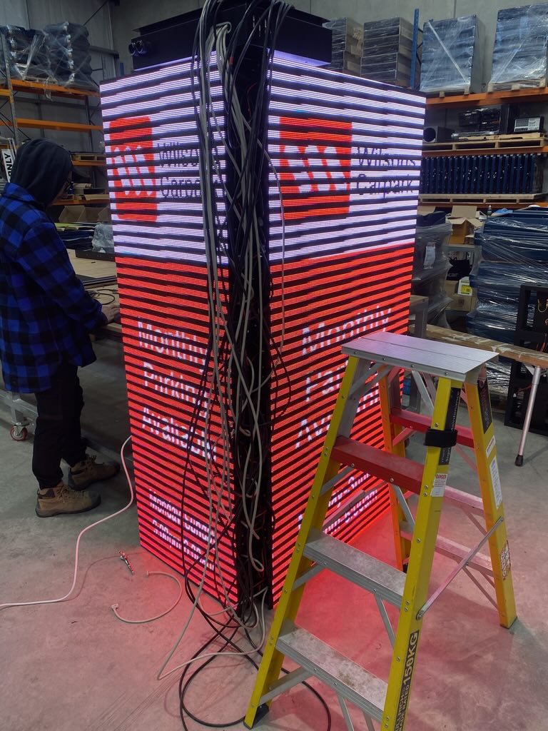 “We are extremely proud of Jackson being the only apprentice to undertake this module,” Dustin says. “He spent his first few years in the workforce completing an electrical apprenticeship, so working with LED screens is a natural extension of his skill set. He meets directly with clients and carries out inductions so they can confidently control their systems. He also runs CNC and welding, meaning he can take a frame and enclosure from concept through to completion himself. For a final term apprentice, that is pretty incredible.”